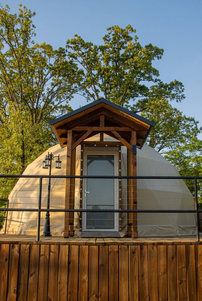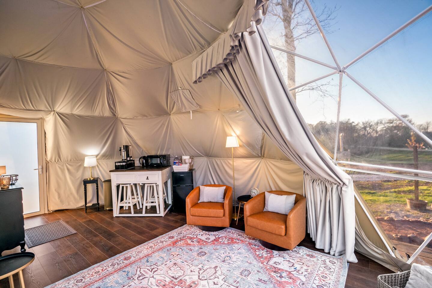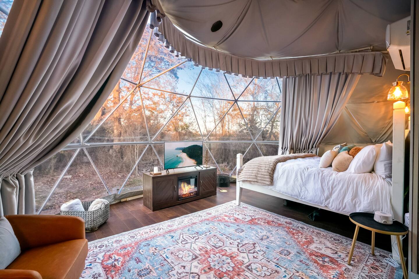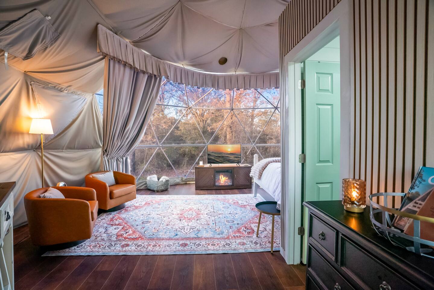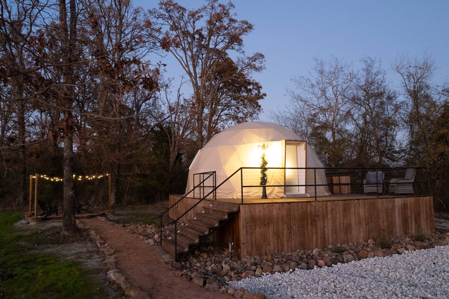 Grace Acres Sunset Dome Retreat Discover serenity at our enchanting geodesic dome, nestled on 65 private acres of woods, pastures, and tranquil ponds. This one-of-a-kind getaway seamlessly blends rustic charm with modern comforts, creating the ultimate retreat.